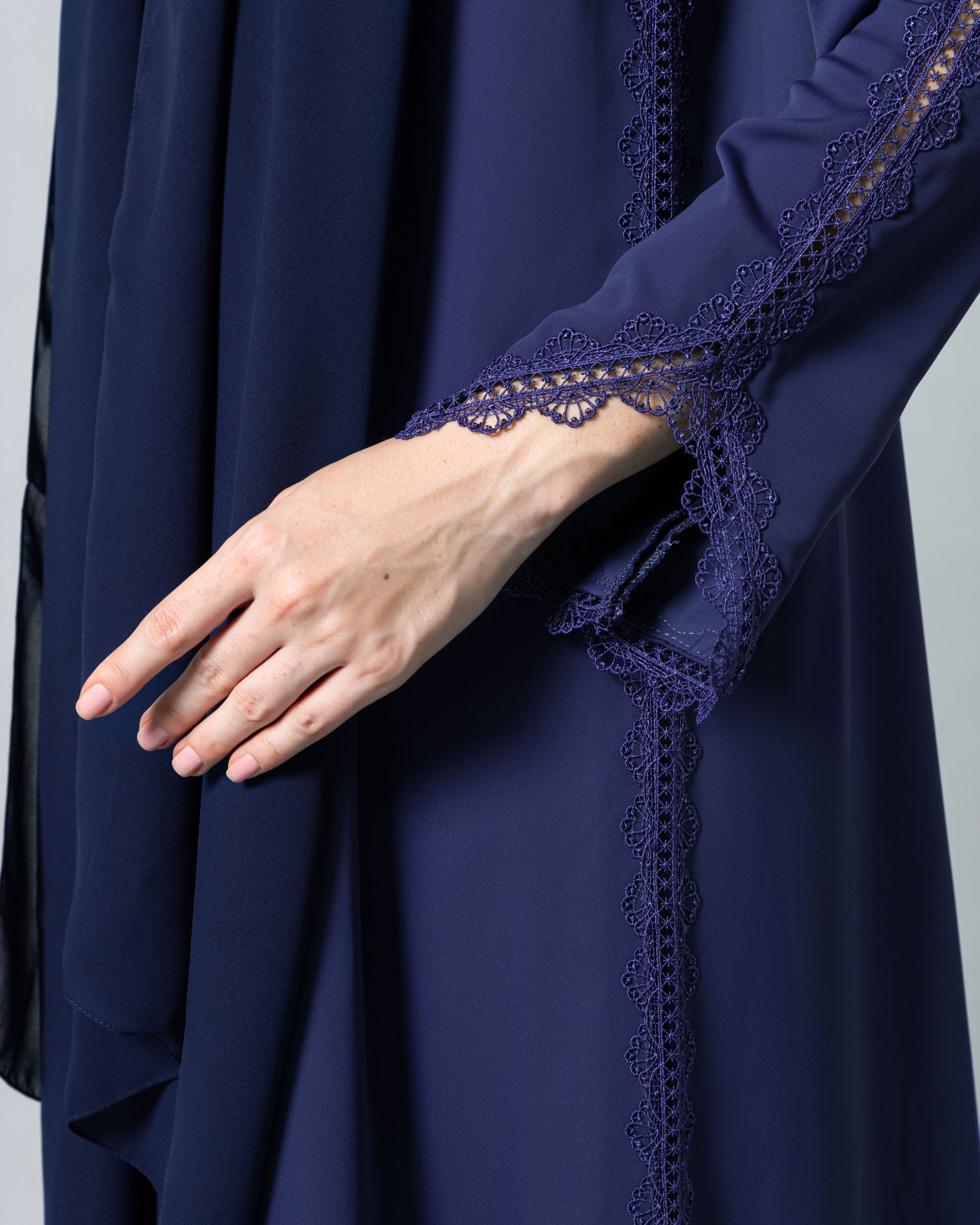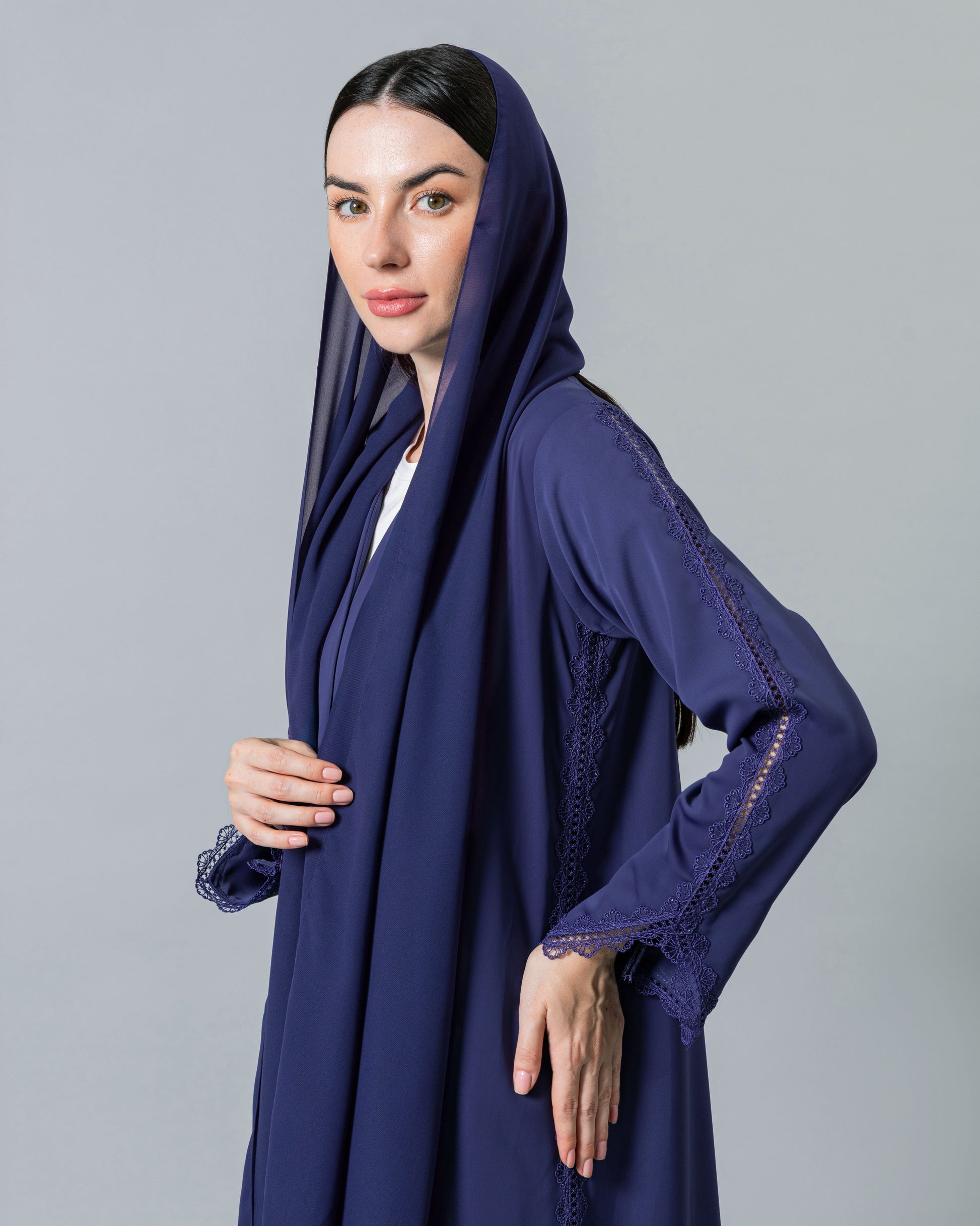 Soft light weight material with a subtle sheen finish. Includes a matching sheila.