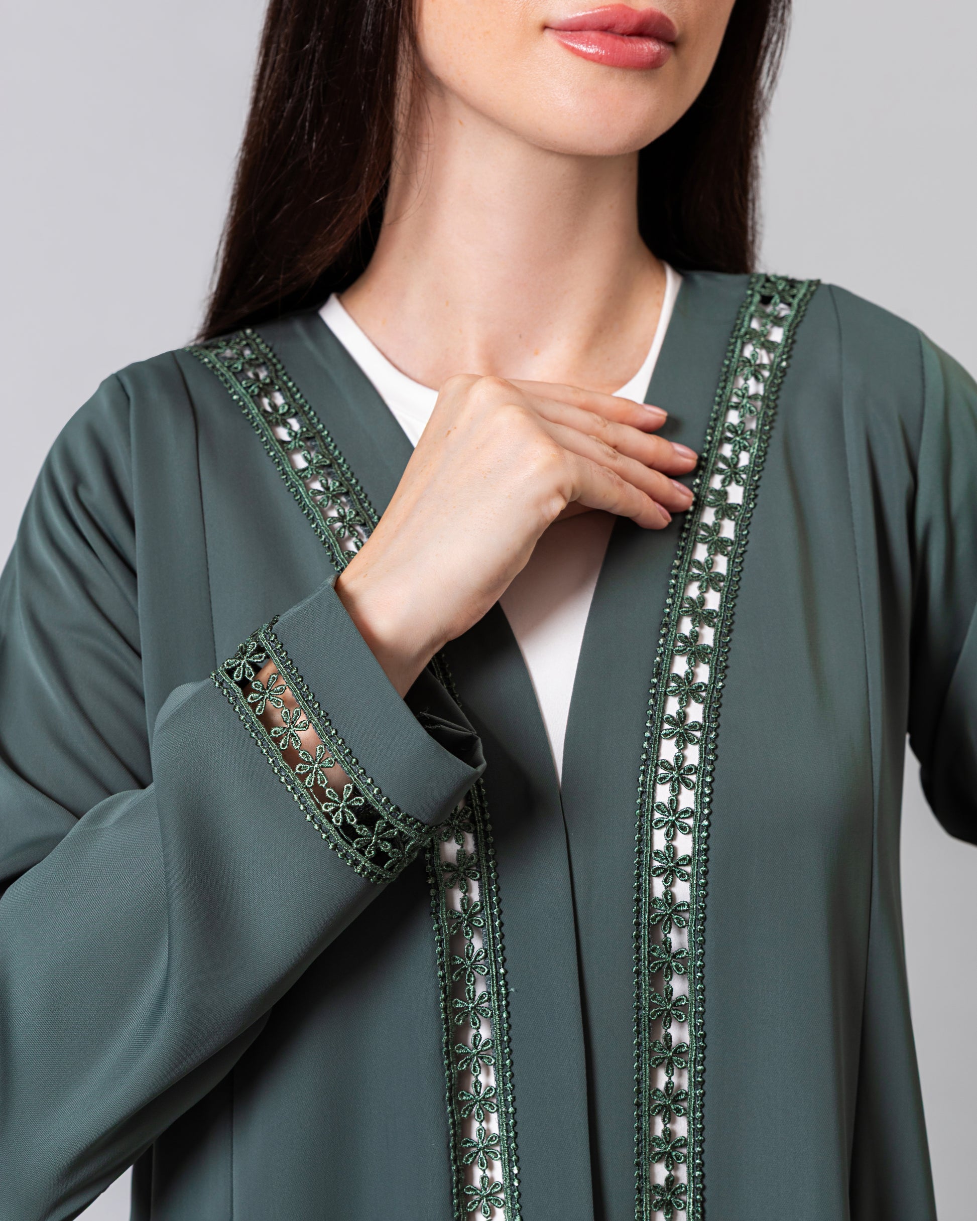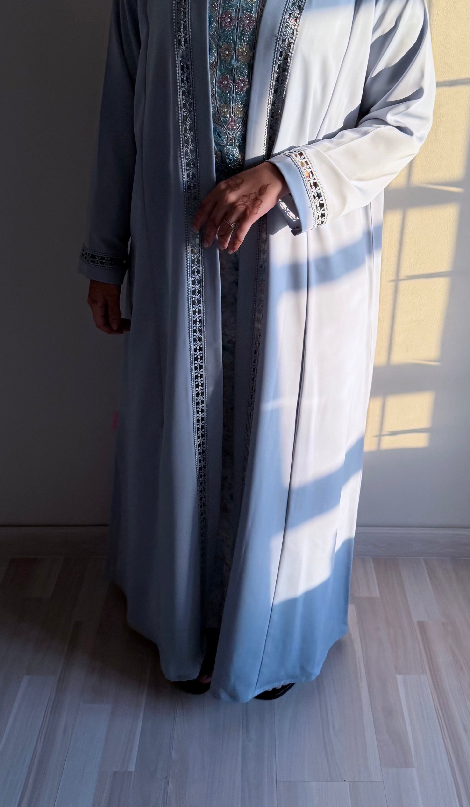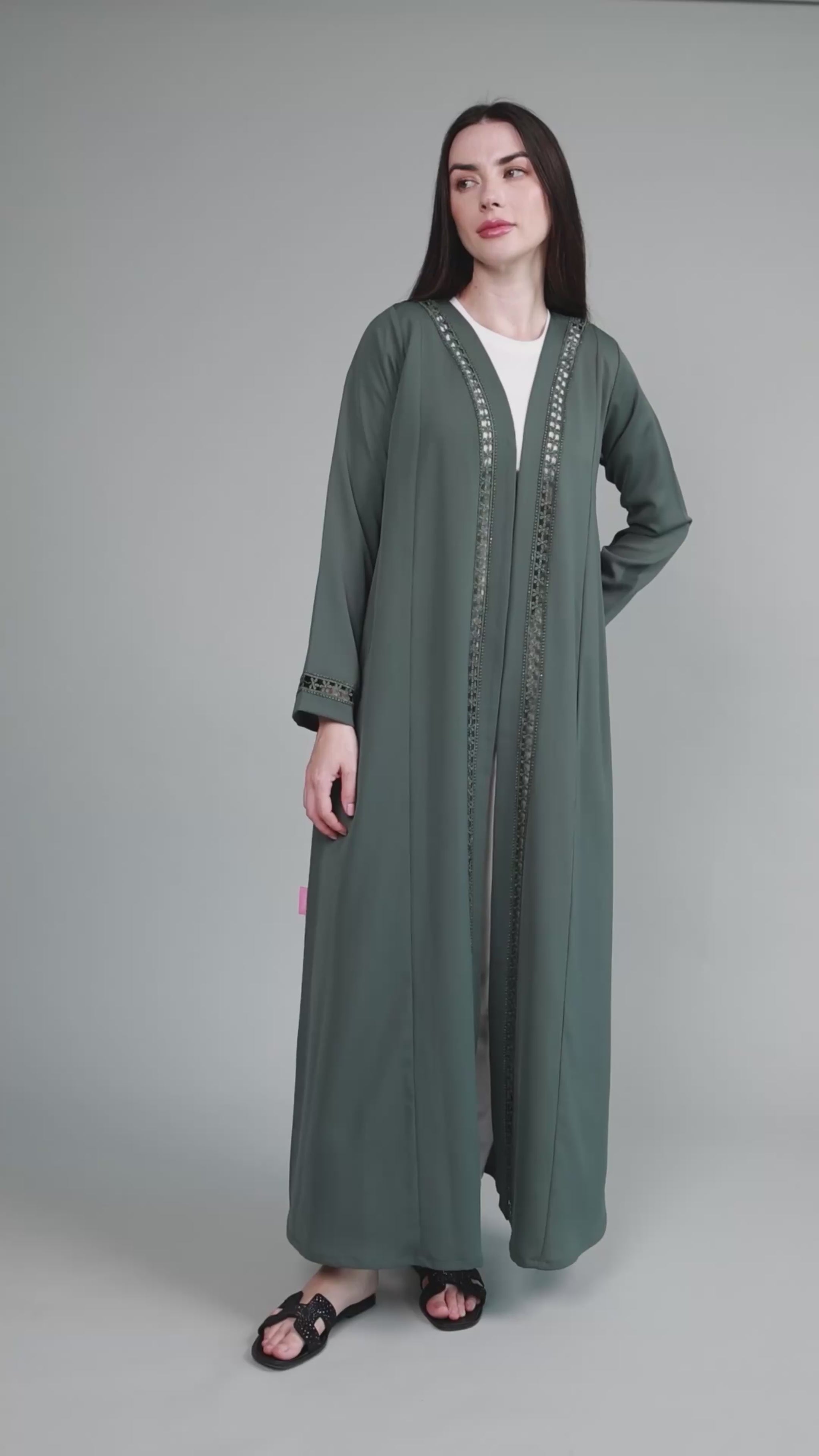 Soft light weight material with a subtle sheen finish. Includes a matching sheila.