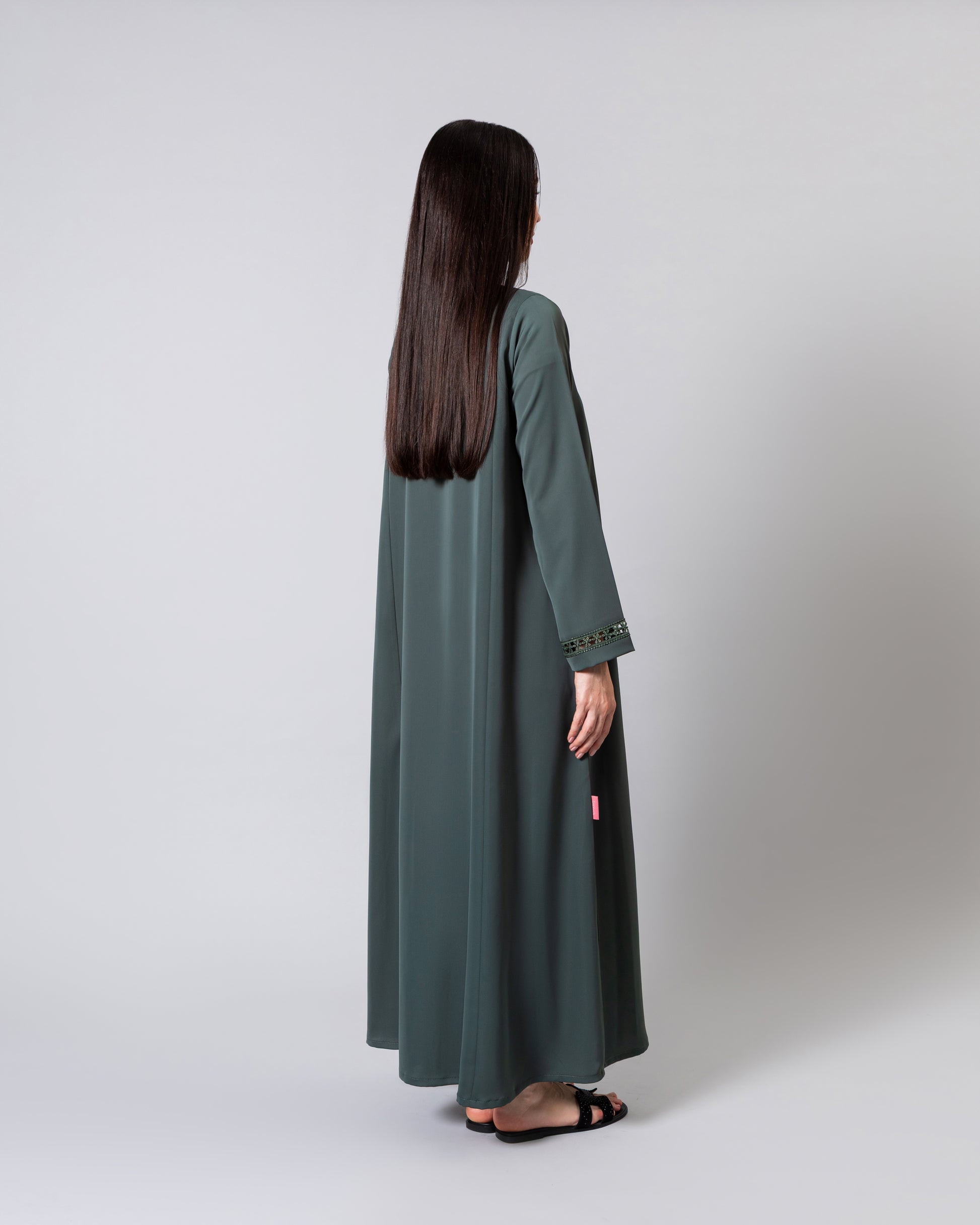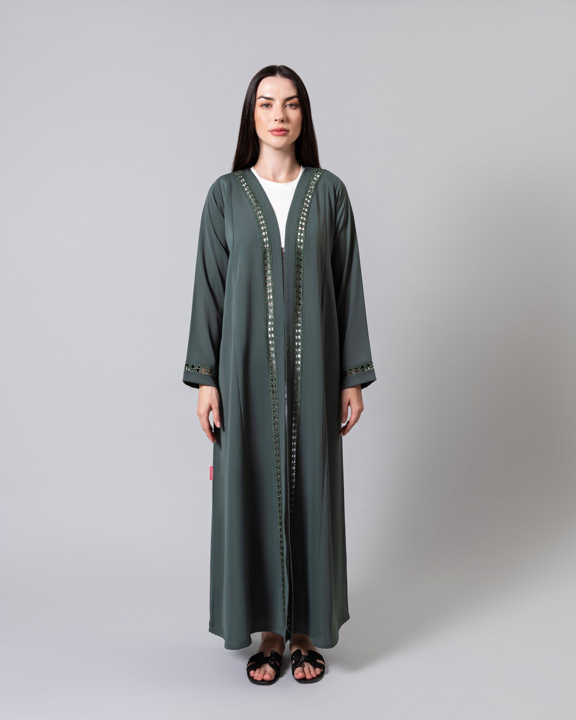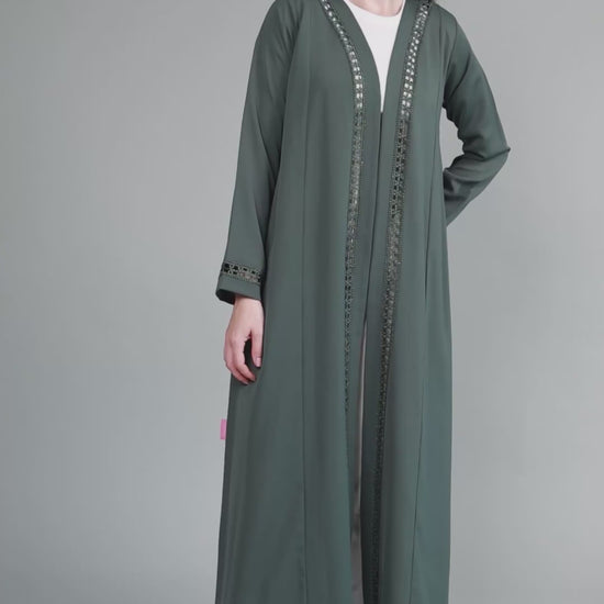 Soft light weight material with a subtle sheen finish. Includes a matching sheila.