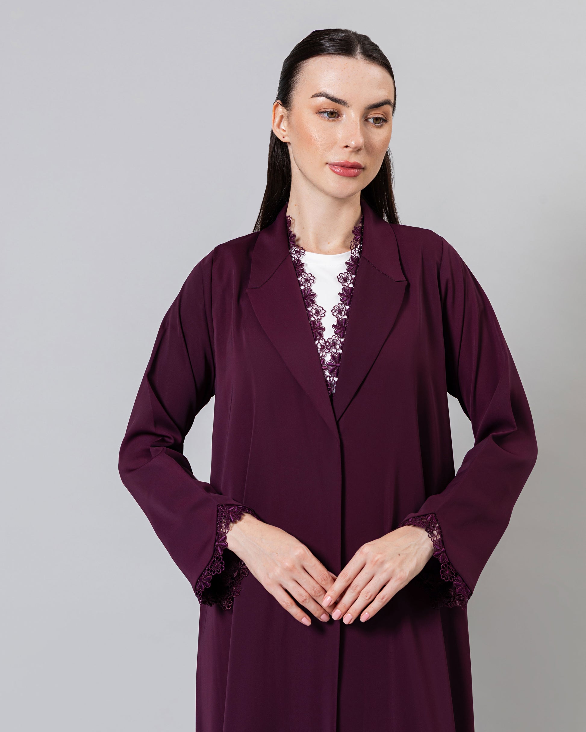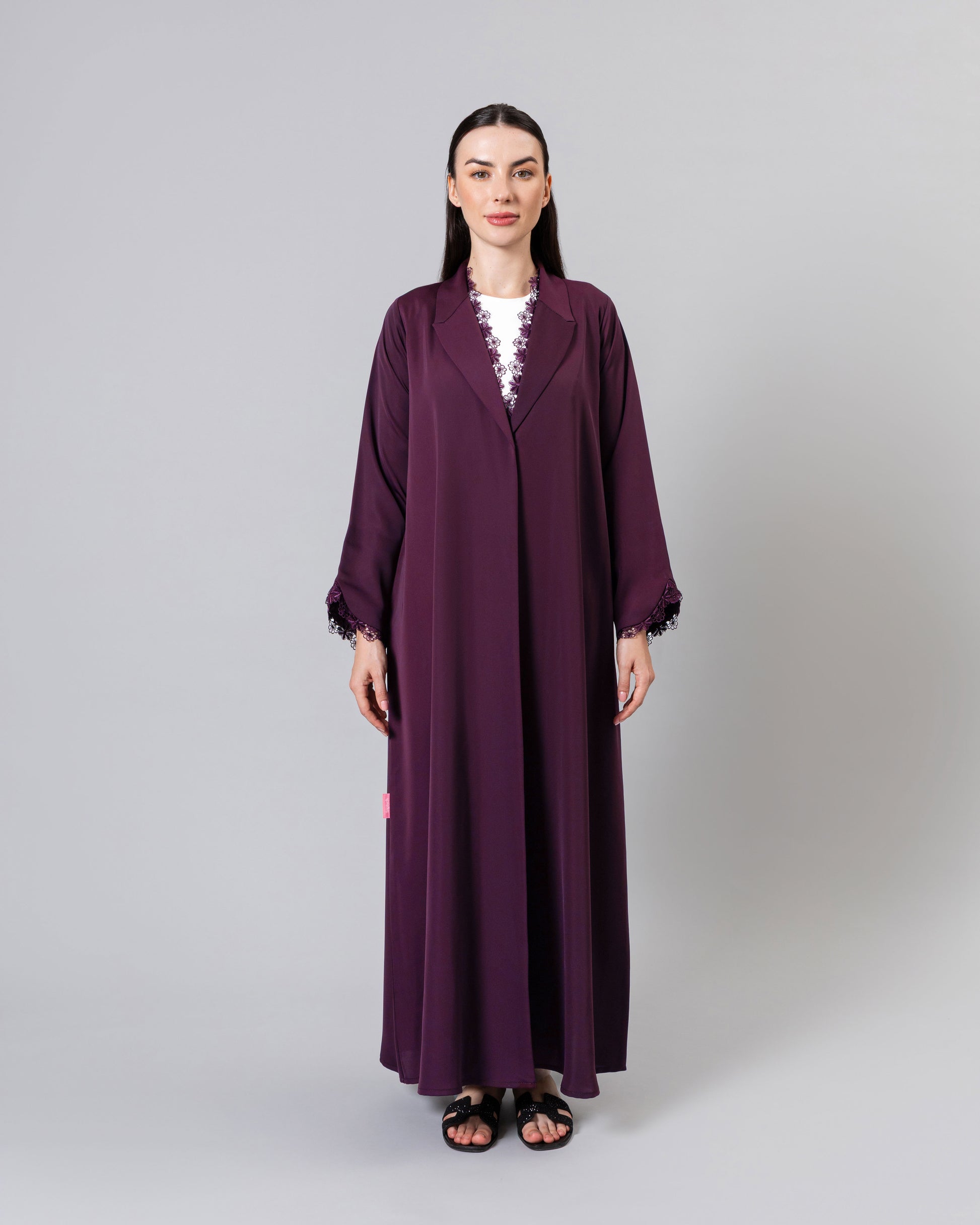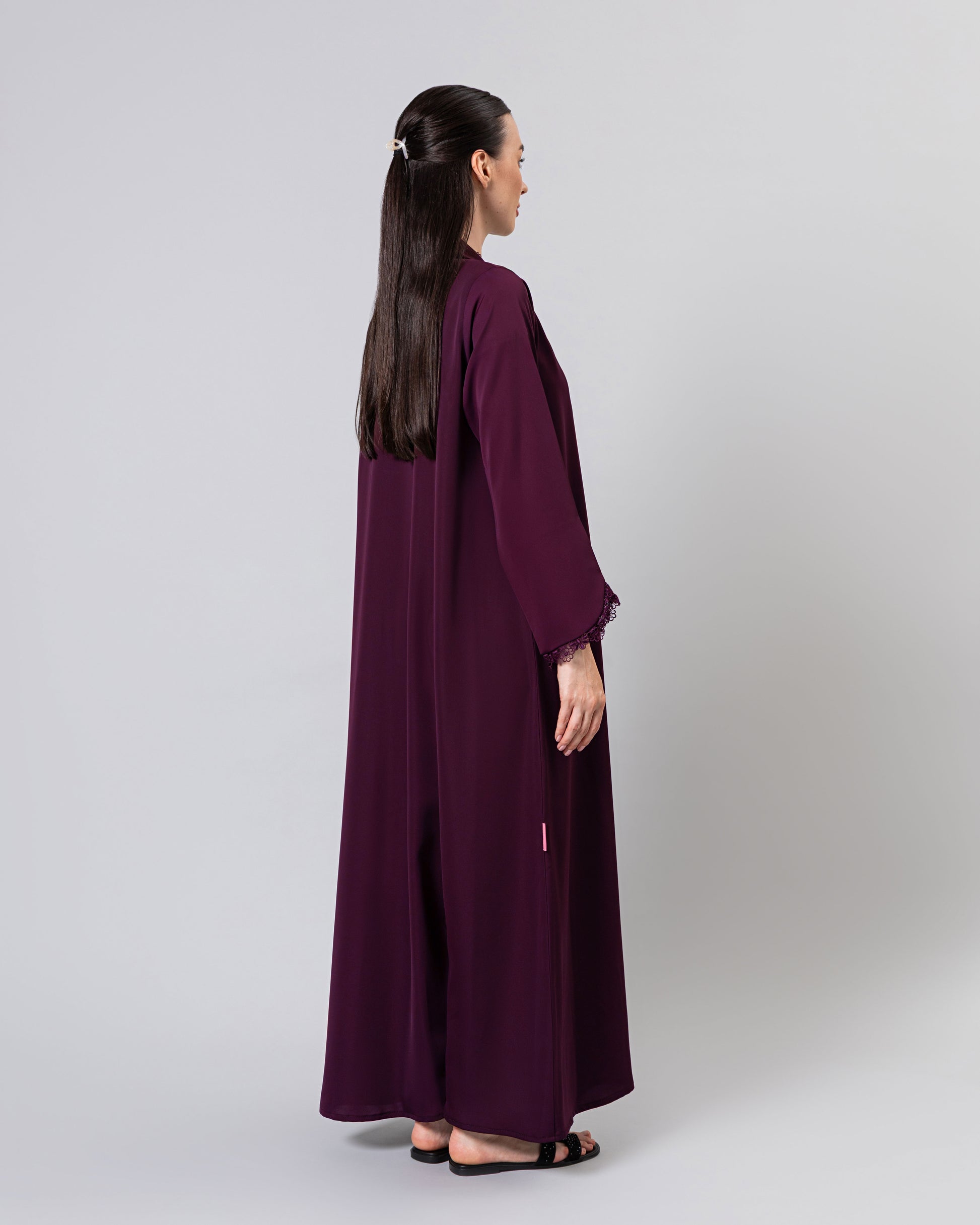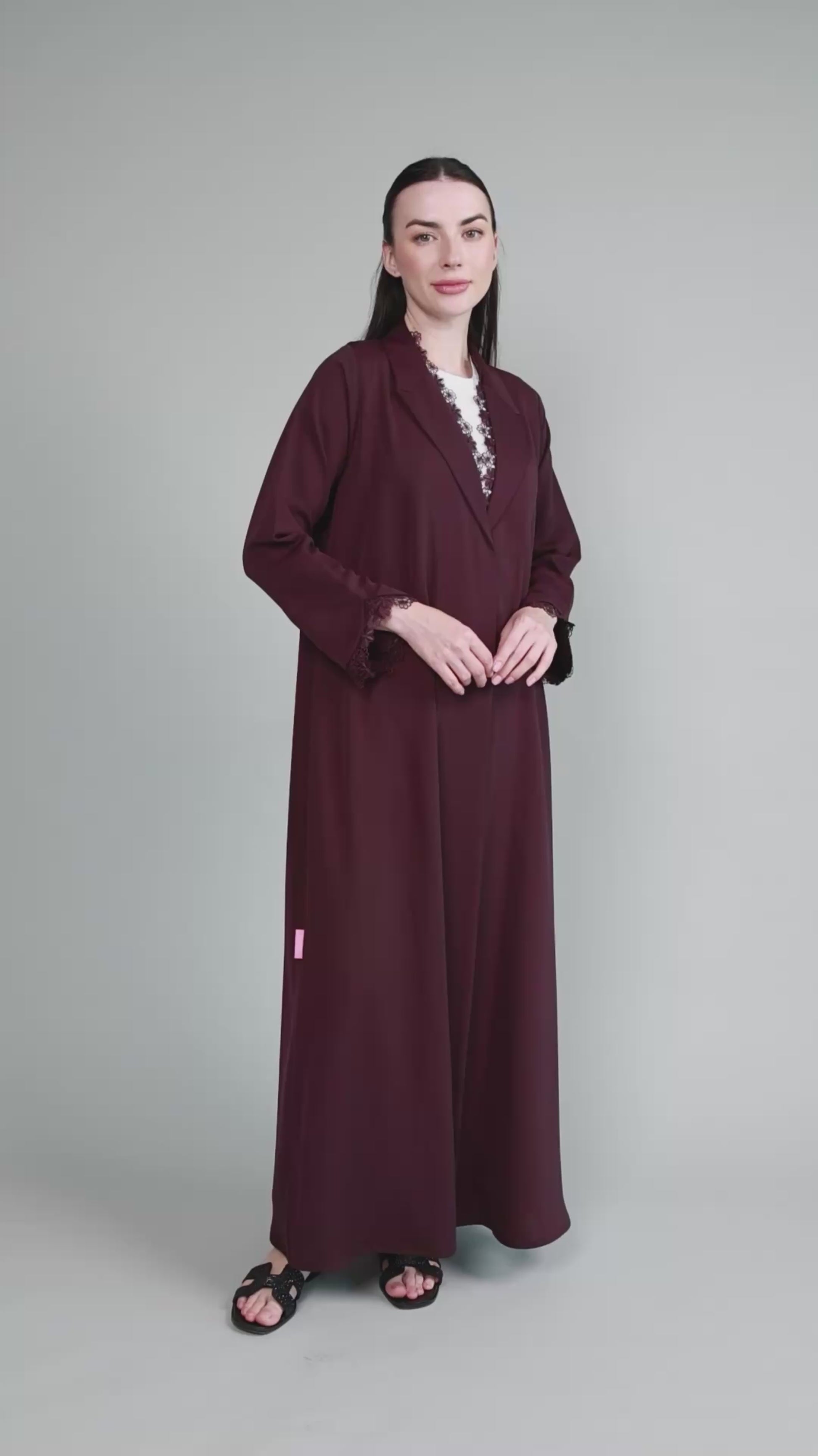 Soft light weight material with a subtle sheen finish. Includes a matching sheila.