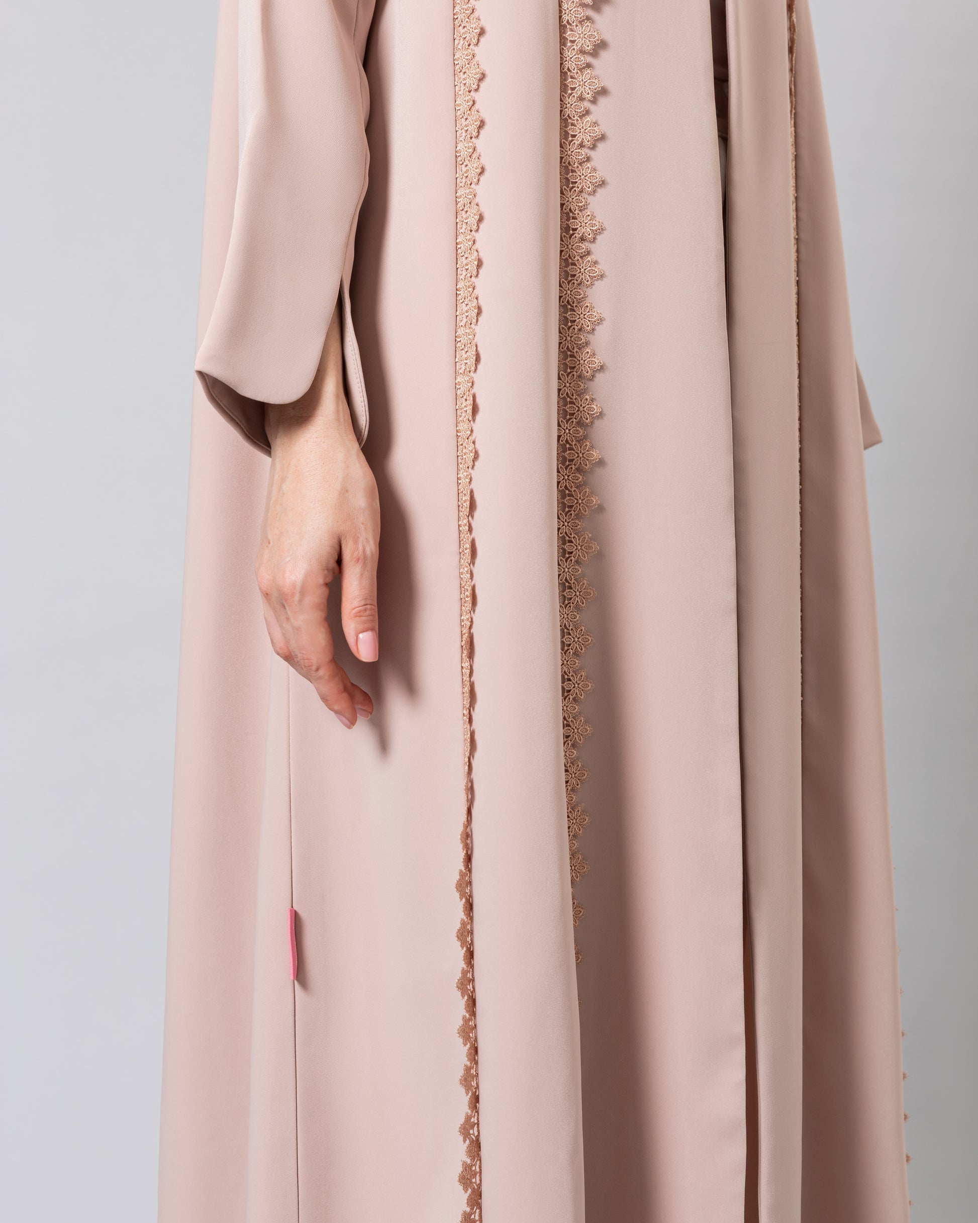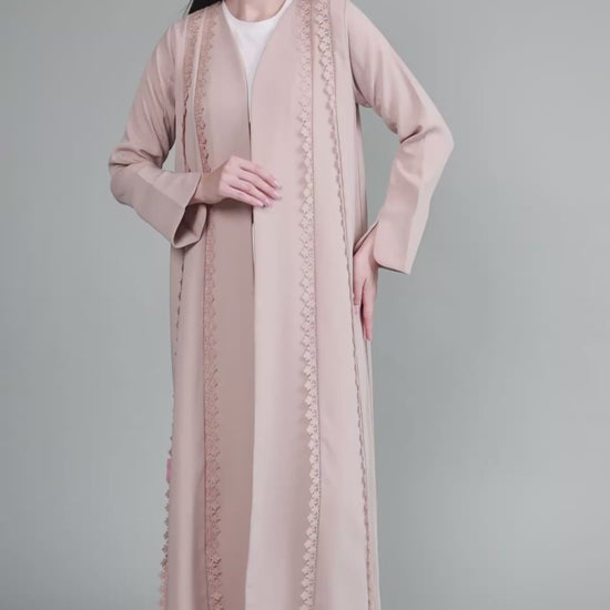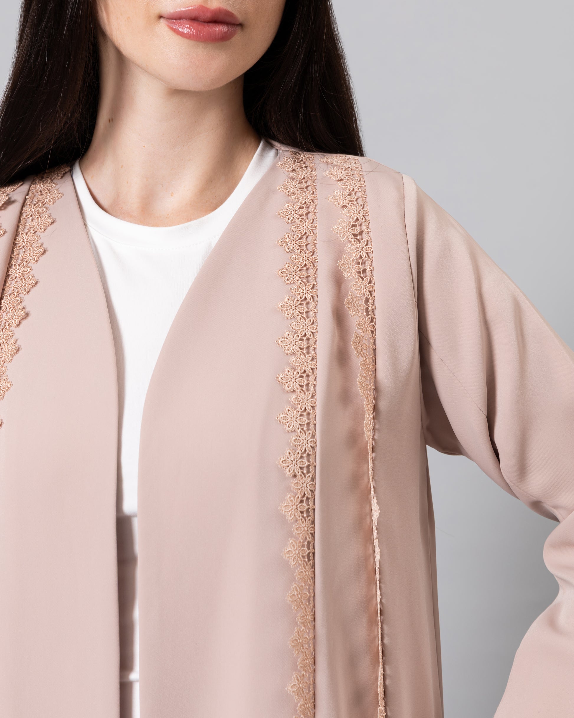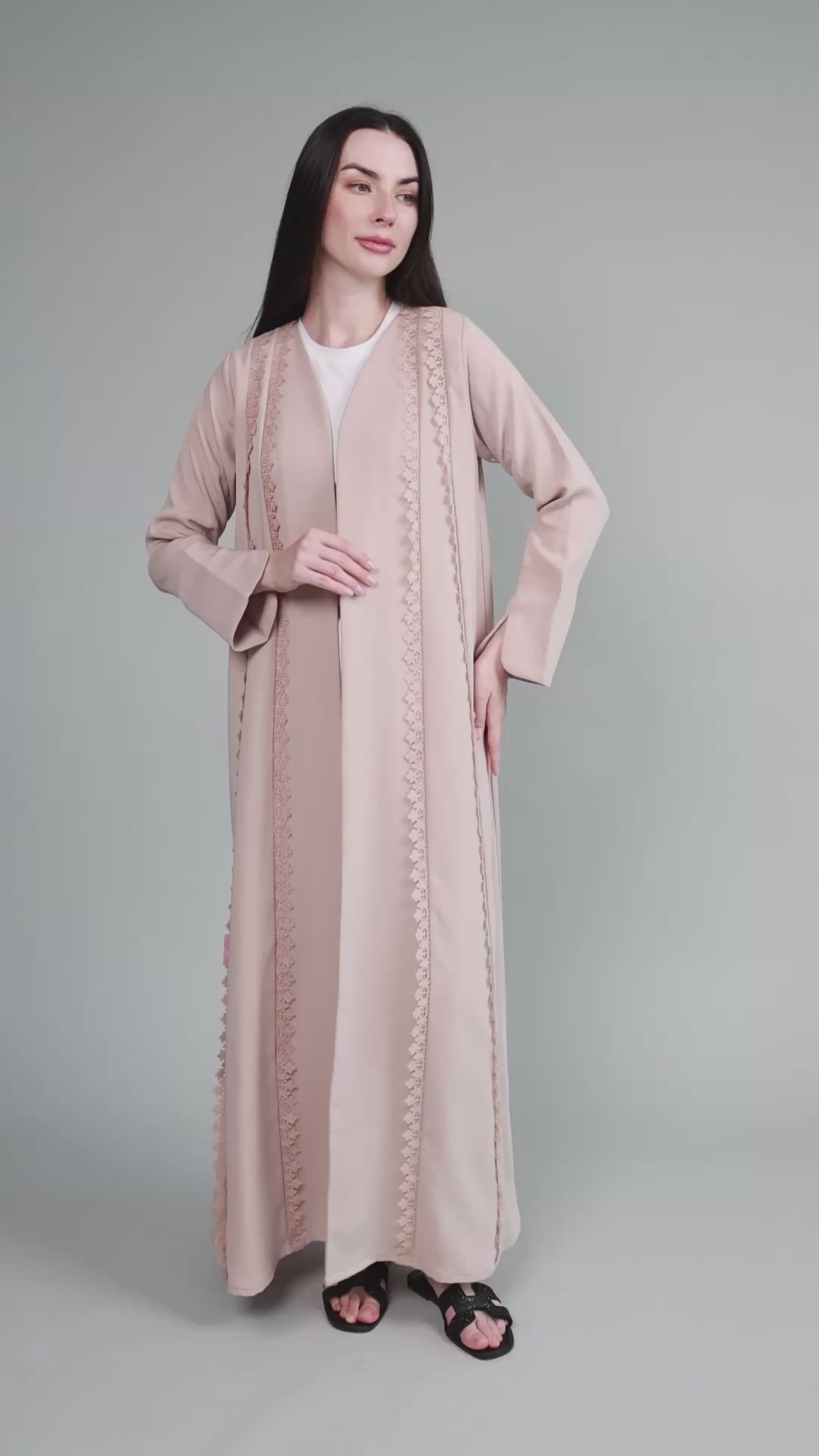 Soft light weight material with a subtle sheen finish. Includes a matching sheila.