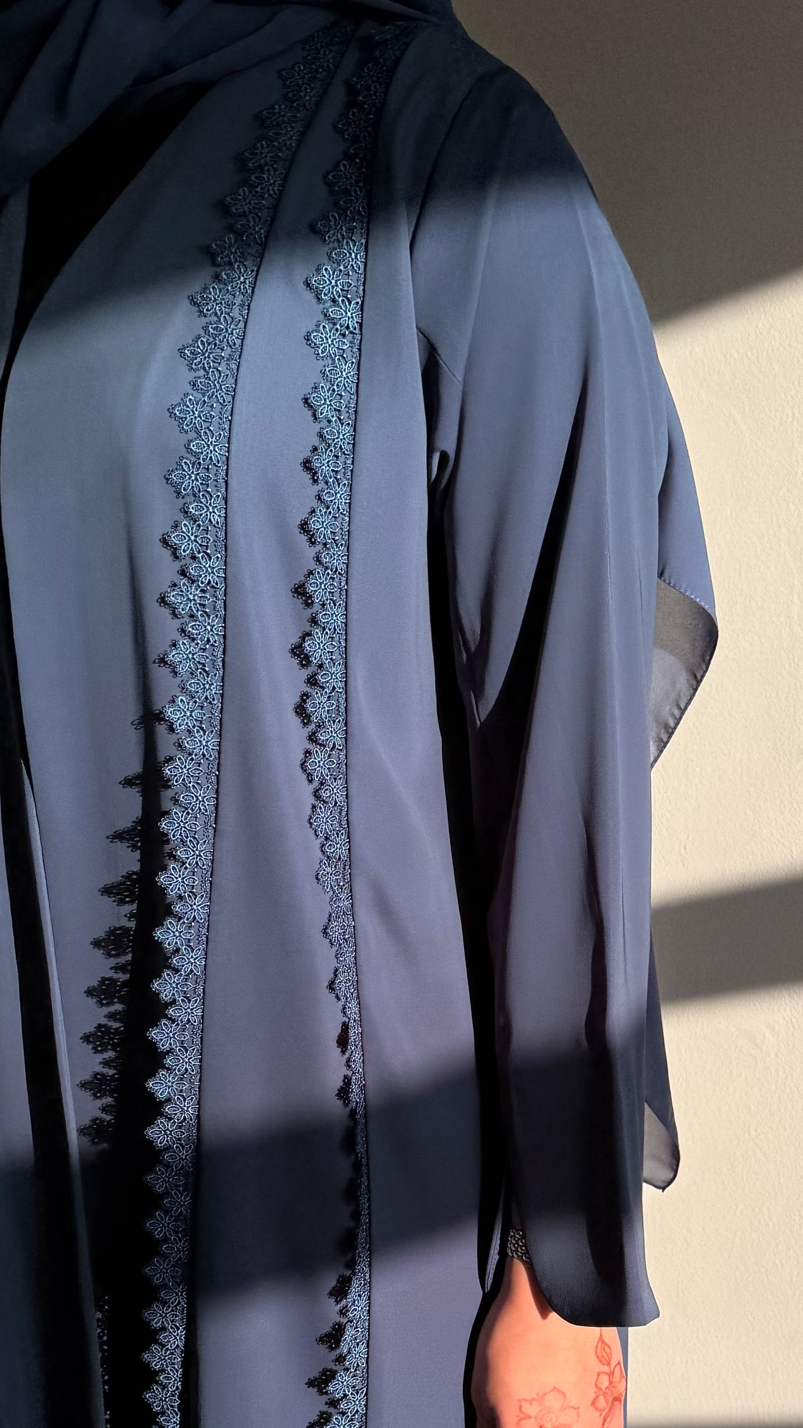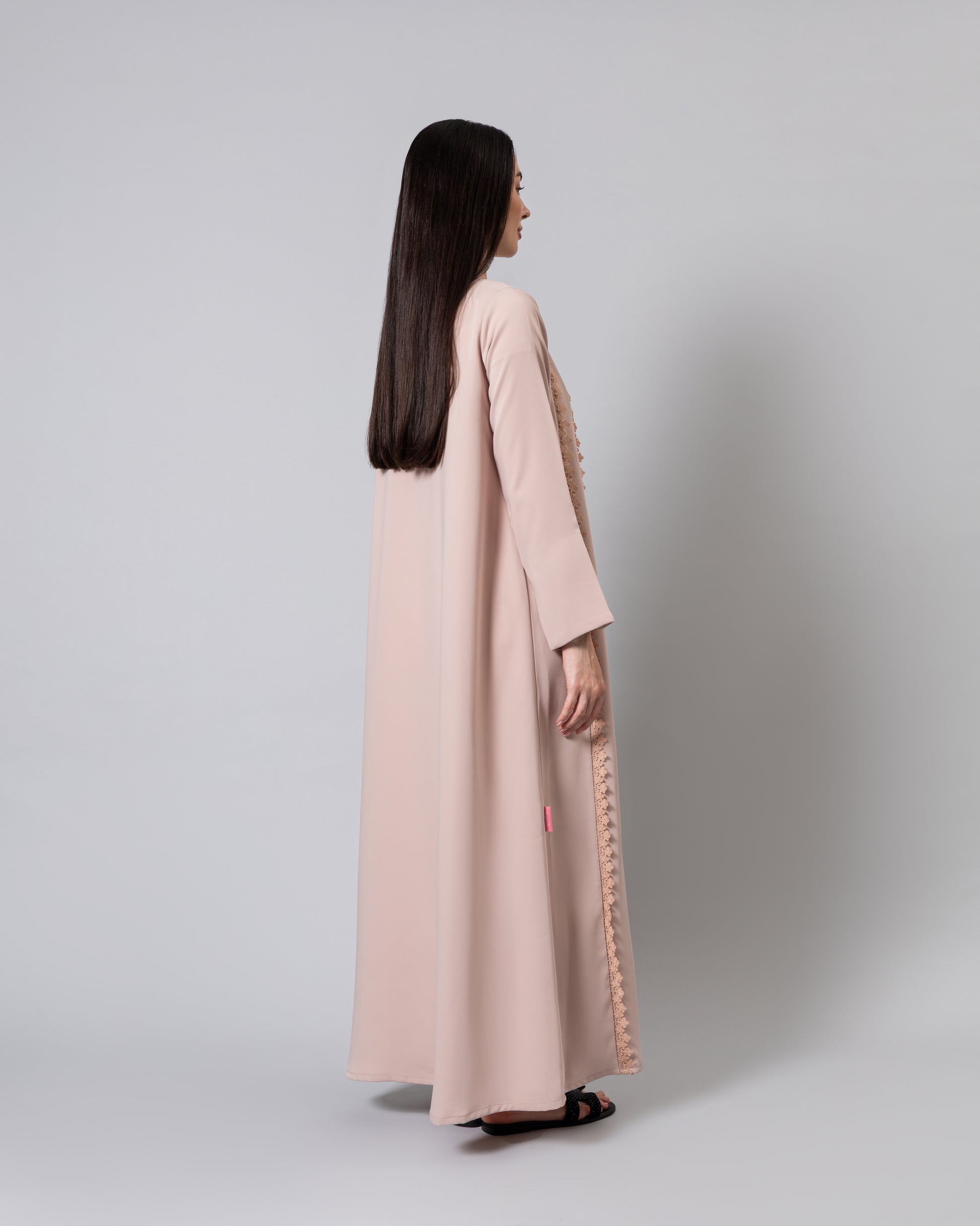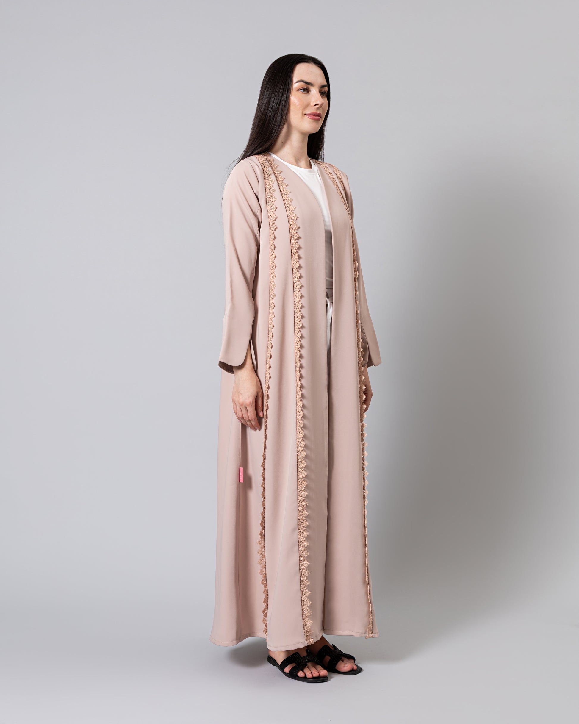 Soft light weight material with a subtle sheen finish. Includes a matching sheila.
